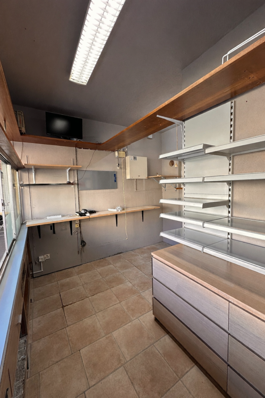 Die Verkaufsfläche eignet sich ideal für einen klassischen Kioskbetrieb mit Tabakwaren, Getränken, Snacks, Zeitschriften oder vergleichbarem Sortiment.